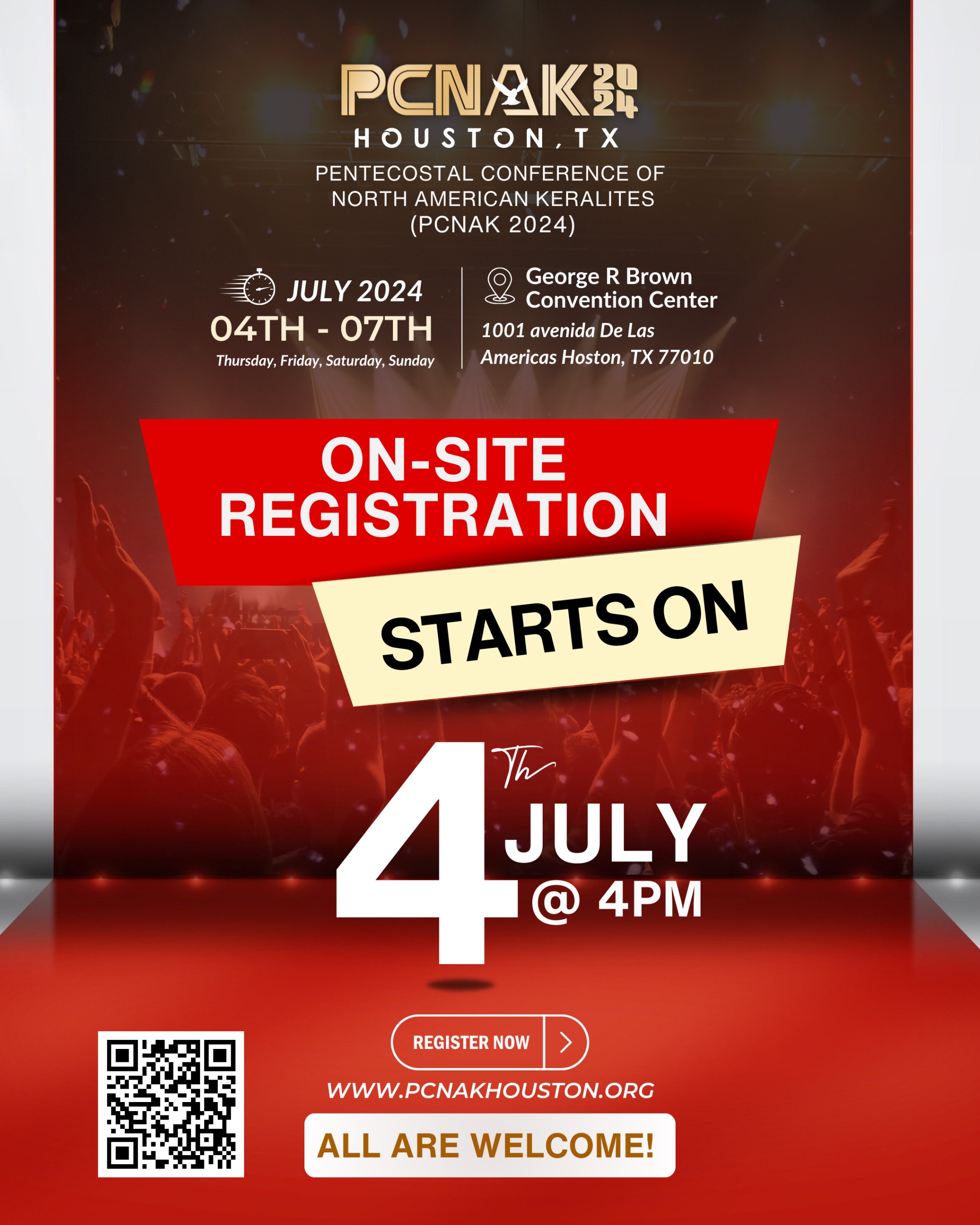 Please proceed directly to the PCNAK registration counter at the Hilton Americas Hotel, located in the Main Lobby (lower level), to collect your registration packages and welcome kit. These items are necessary for checking in at the hotel.